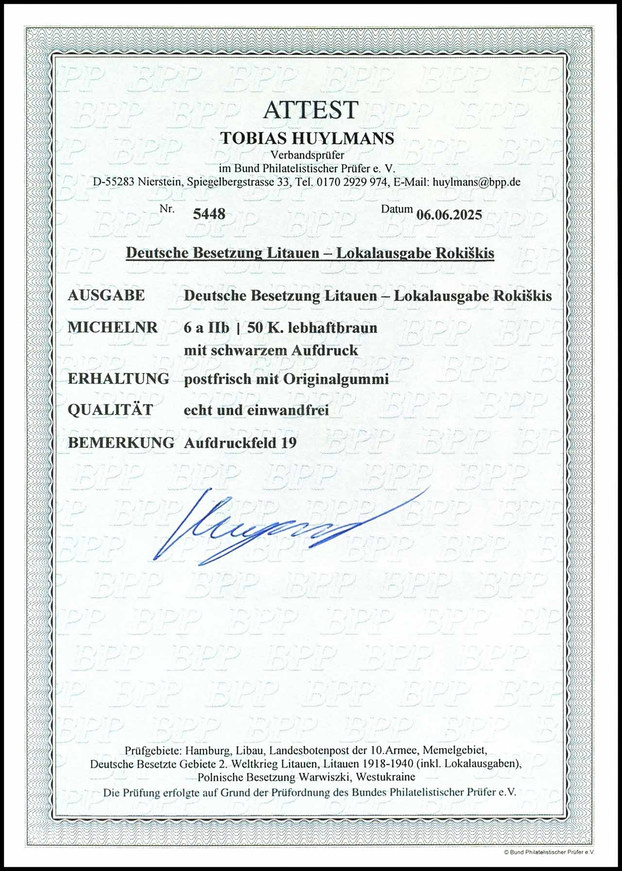 50 Kopeken, lebhaftbraun mit schwarzem Aufdruck in Type IIb, Aufdruckfeld 19, tadellos, postfrisch, unsigniert, Fotoattest Tobias Huylmans BPP (2025), Mi. 500.-