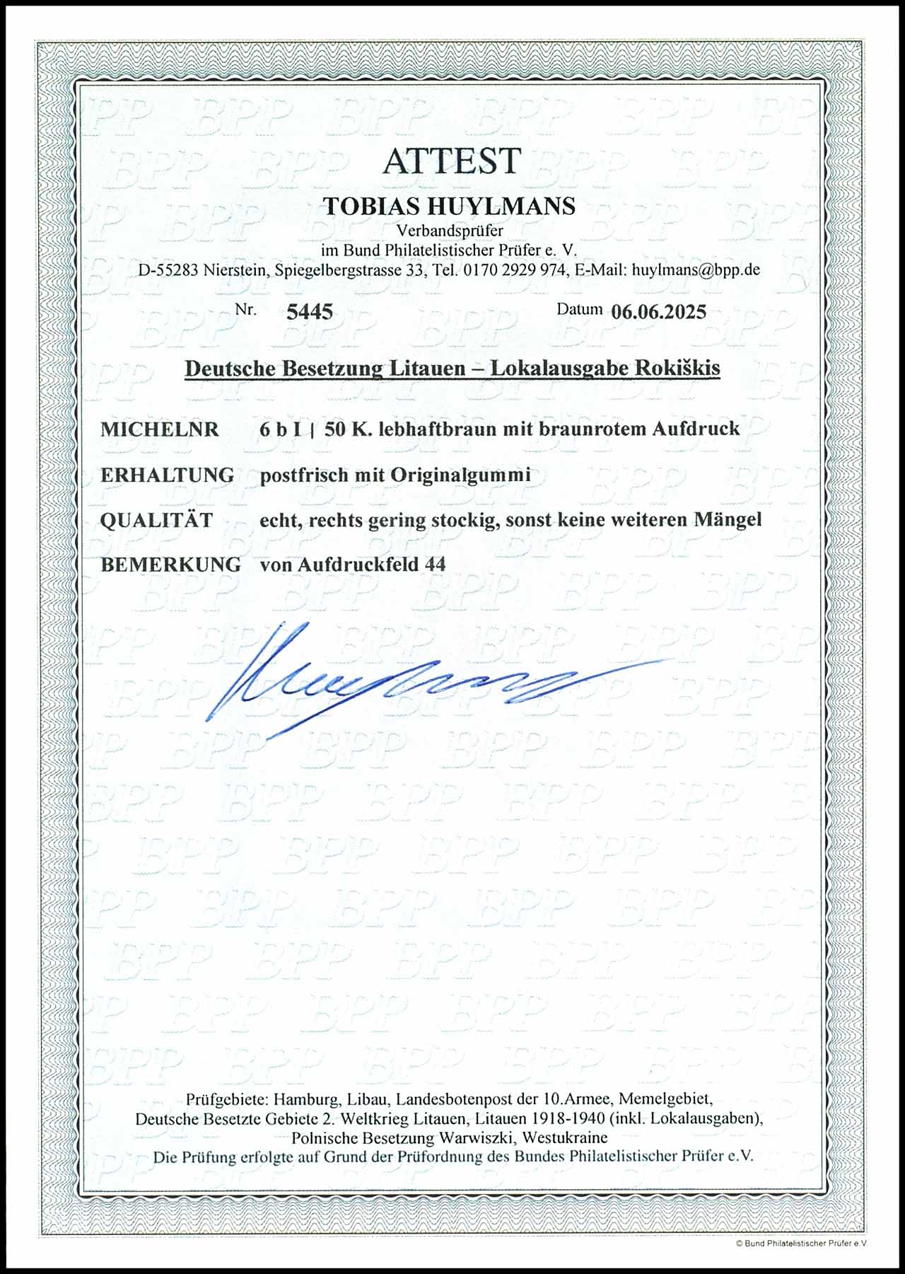 50 Kopeken Freimarke mit Aufdruck in Type I, postfrisch, sehr gut erhalten, rechts gering stockig, Fotoattest Huylmans BPP (2025), Mi. 340.-