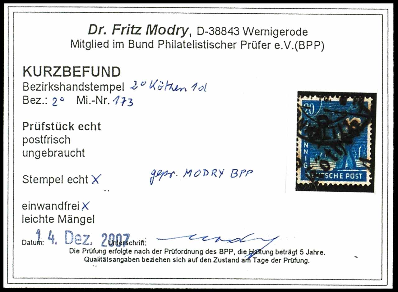 20, 30,40 Pfennig mit Aufdrucken 2o Köthen 1, 2o Köthen 2 Land, 2o Raguhn, gestempelt, tadellose Erhaltung, geprüft Dr. Kalb BPP, Dr. Modry BPP, Schmidt VPEX, Mi. 380,-