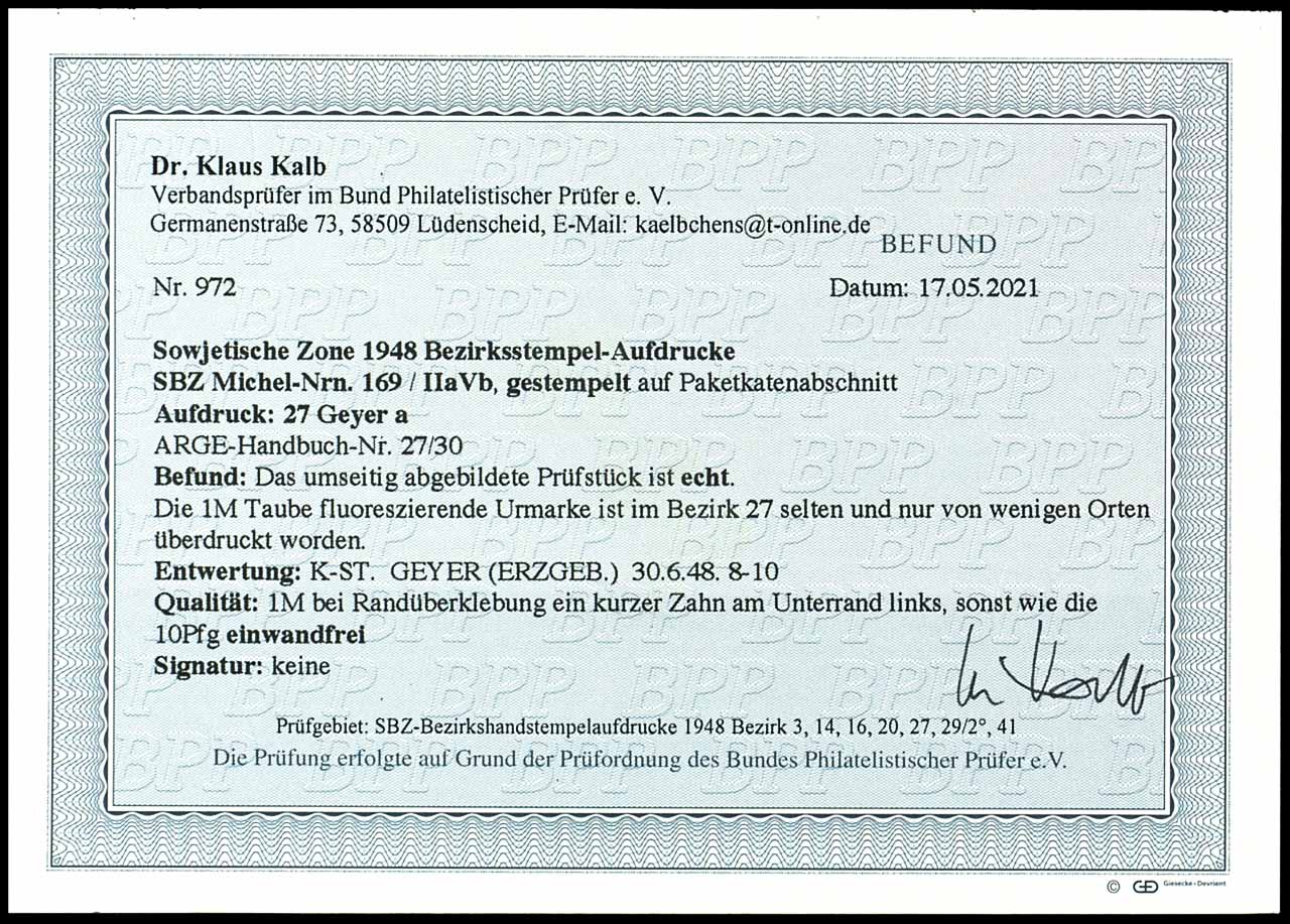 1 Mark und 10 Pfennig Arbeiter auf Paketkartenabschnitt, ein kurzer Zahn am Unterrand, sonst tadellose Erhaltung, Fotobefund Dr. Kalb BPP, Mi. 457,-