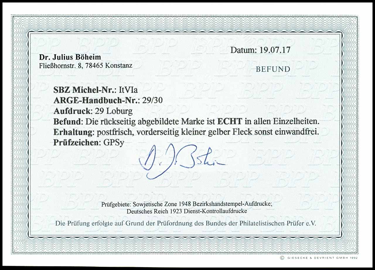 50 Pfennig Ziffer mit Aufdruck 29 Loburg, postfrisch, kaum sichtbares gelbes Fleckchen, sonst tadellose Erhaltung, Fotobefund Dr. Böheim BPP, Mi. 280,-