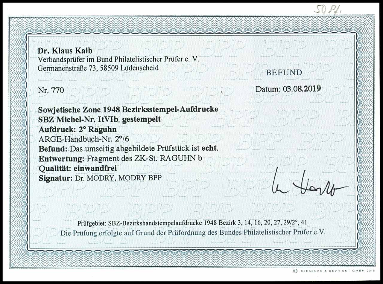 Ziffer 50 mit Aufdruck 2o Raguhn, gestempelt, tadellose Erhaltung, Fotobefund Dr. Kalb BPP, Mi. 320,-