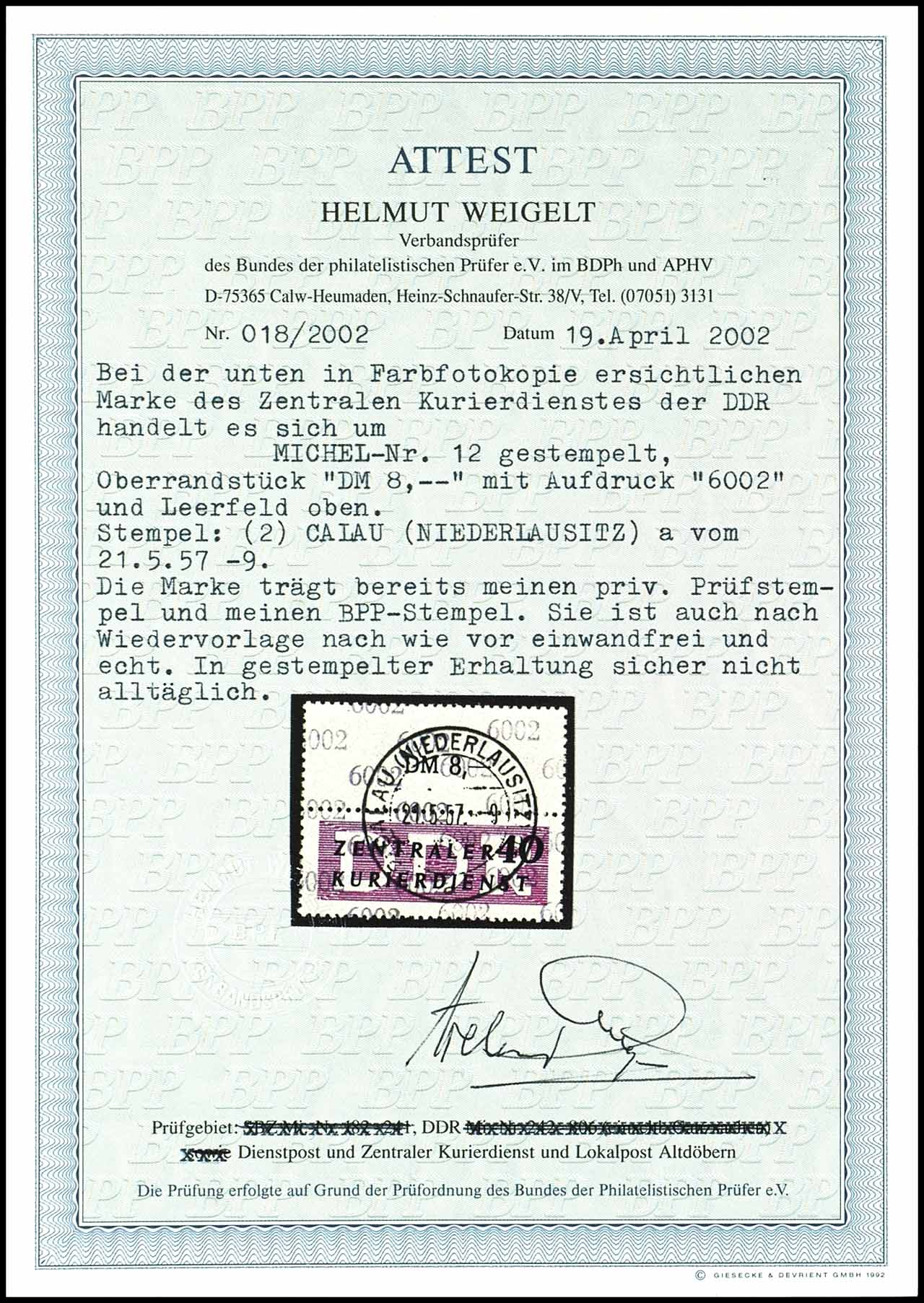 40 Pf. ZKD-Marke mit Aufdruck "6002" mit Leerfeld oben, tadellos, gestempelt, Fotoattest Weigelt BPP