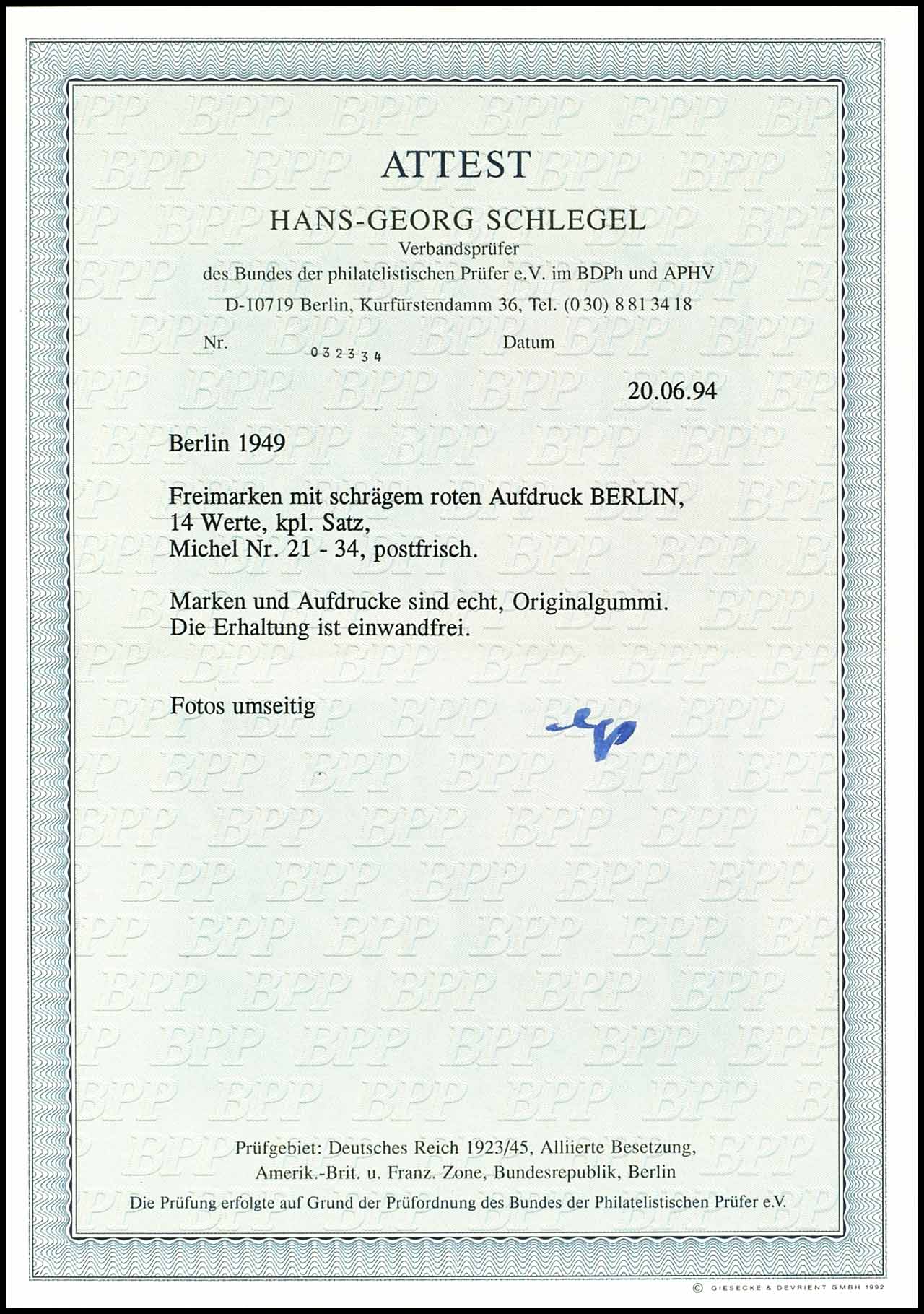 2 Pfennig bis 2 Mark Rotaufdruck, postfrisch, tadellose Erhaltung,, Fotoattest Schlegel BPP, Mi. 1400,-