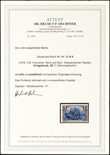 2 Mark "Nord und Süd" in Type AII tadellos postfrisch, Fotoattest Oechsner BPP: "echt und postfrisch .. in einwandfreier Qualität." Mi. 420,--