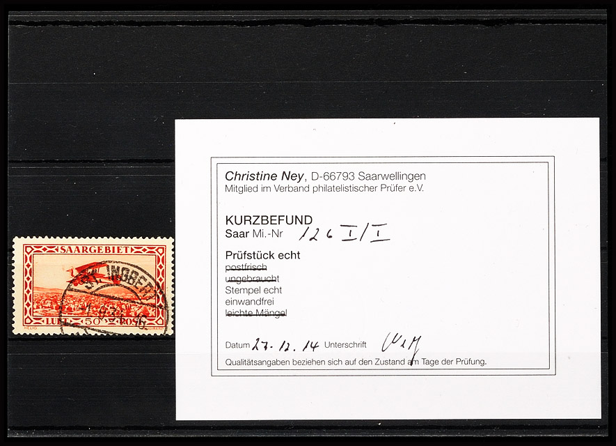 50 C. Flugpostmarke, Erstauflage, Plattenfehler I, sehr schön plattenfehlersichtfrei gestempelt "ST. INGBERT 1.9.34", Fotokurzbefund Ney VP (12/2014) "einwandfrei", Mi. 150.-