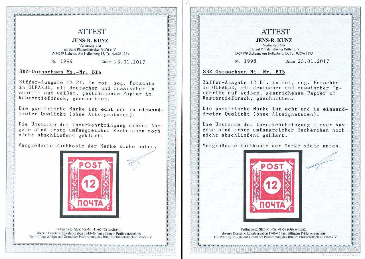 12 Pfg rot, sog. Potschta in Ölfarbe, tadellos postfrisch, 5 Exemplare, unsigniert, je Fotoattest Kunz BPP "echt und in einwandfreier Qualität.", Mi. 3.250.-
