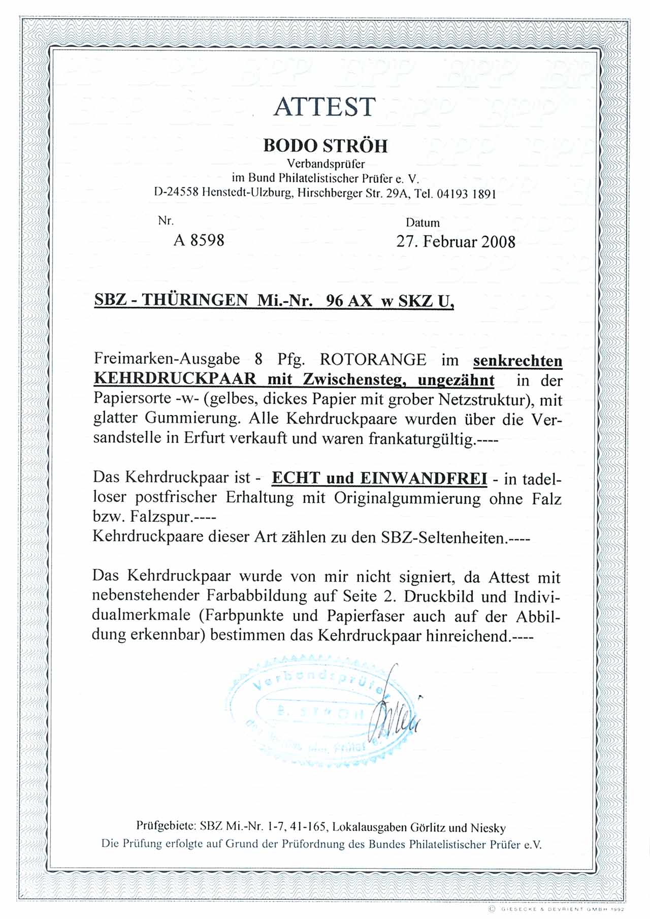 8 Pfg Freimarke rotorange, ungezähntes senkrechtes Zwischensteg-Kehrdruckpaar, tadellos postfrisch, Fotoattest Ströh BPP: "echt und einwandfrei ... zählen zu den SBZ-Seltenheiten.", Mi. 1.200.-