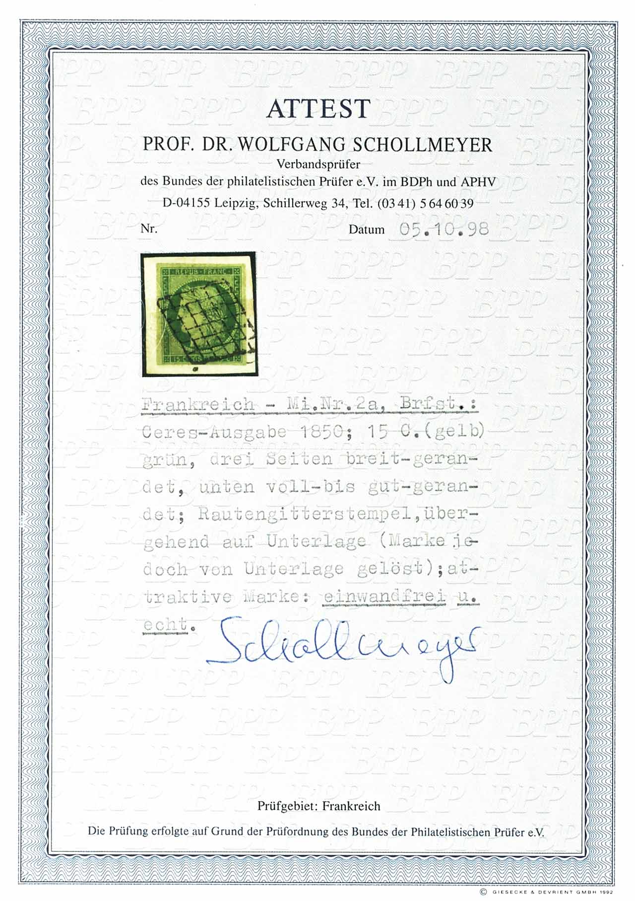 15 C. gelbgrün, vollrandiges und farbfrisches Kabinettstück, klar gestempelt mit Rautenstempel auf zugehörigem Briefstück (gelöst), Fotoattest Schollmeyer BPP: "echt und einwandfrei", Mi. 1.200.- - in dieser schönen Erhaltung eine seltene Marke!