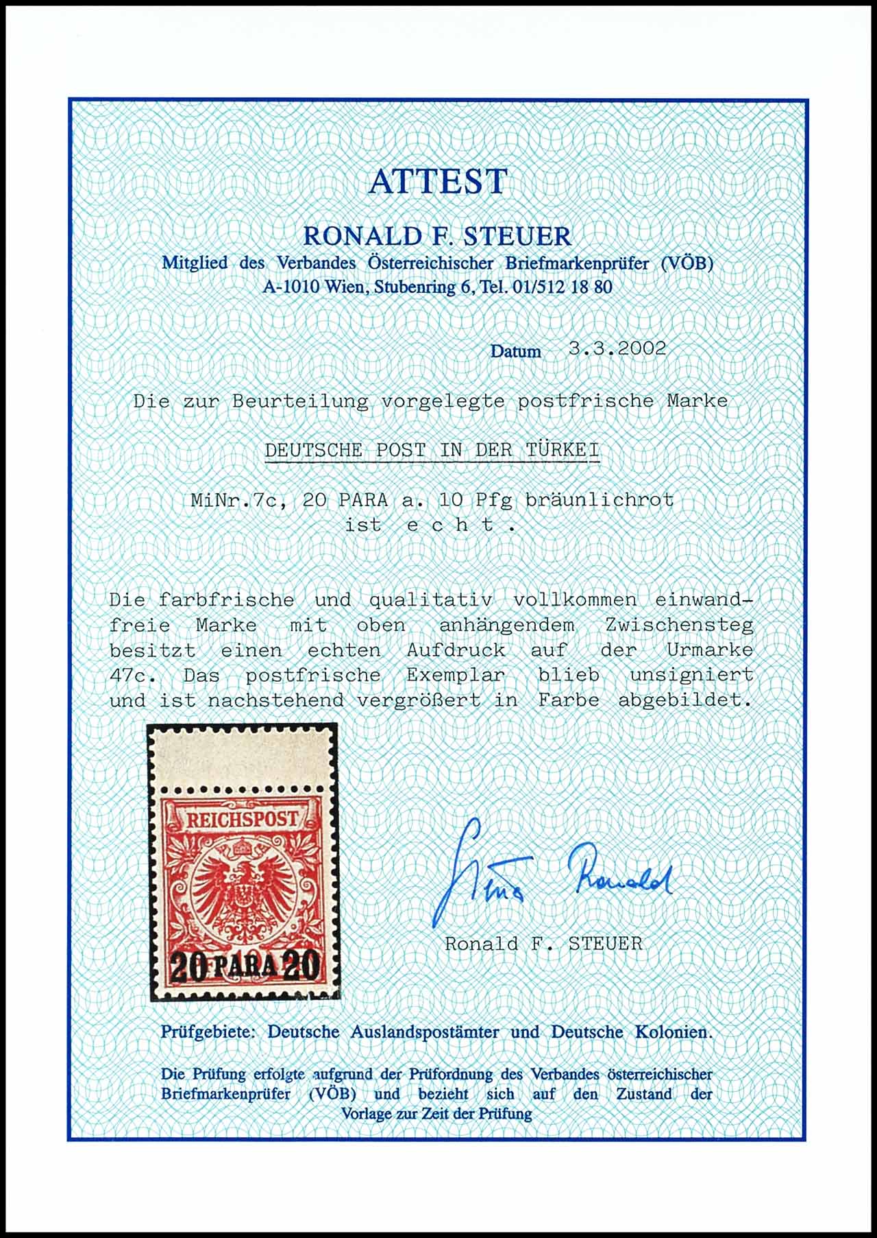 20 Para auf 10 Pf dunkelrosa(rot), UV gelblichorange, tadellos ungebraucht mit kleinem Erstfalzrest, Fotoattest Jäschke-Lantelme BPP "gut gezähnt und in fehlerfreier, ungebrauchter Erhaltung." Mi. 300.-