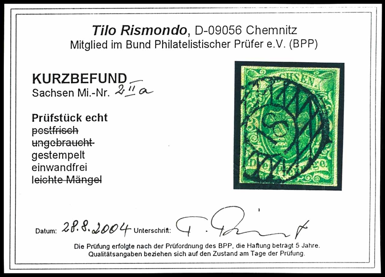 3 pfennigs coat of arms green, later edition, cancelled by numeral postmark "18" - Grossenhain, fresh colours and having full margins extremely fine copy, photo expertize Tilo Rismondo BPP "perfect", Michel 120.-