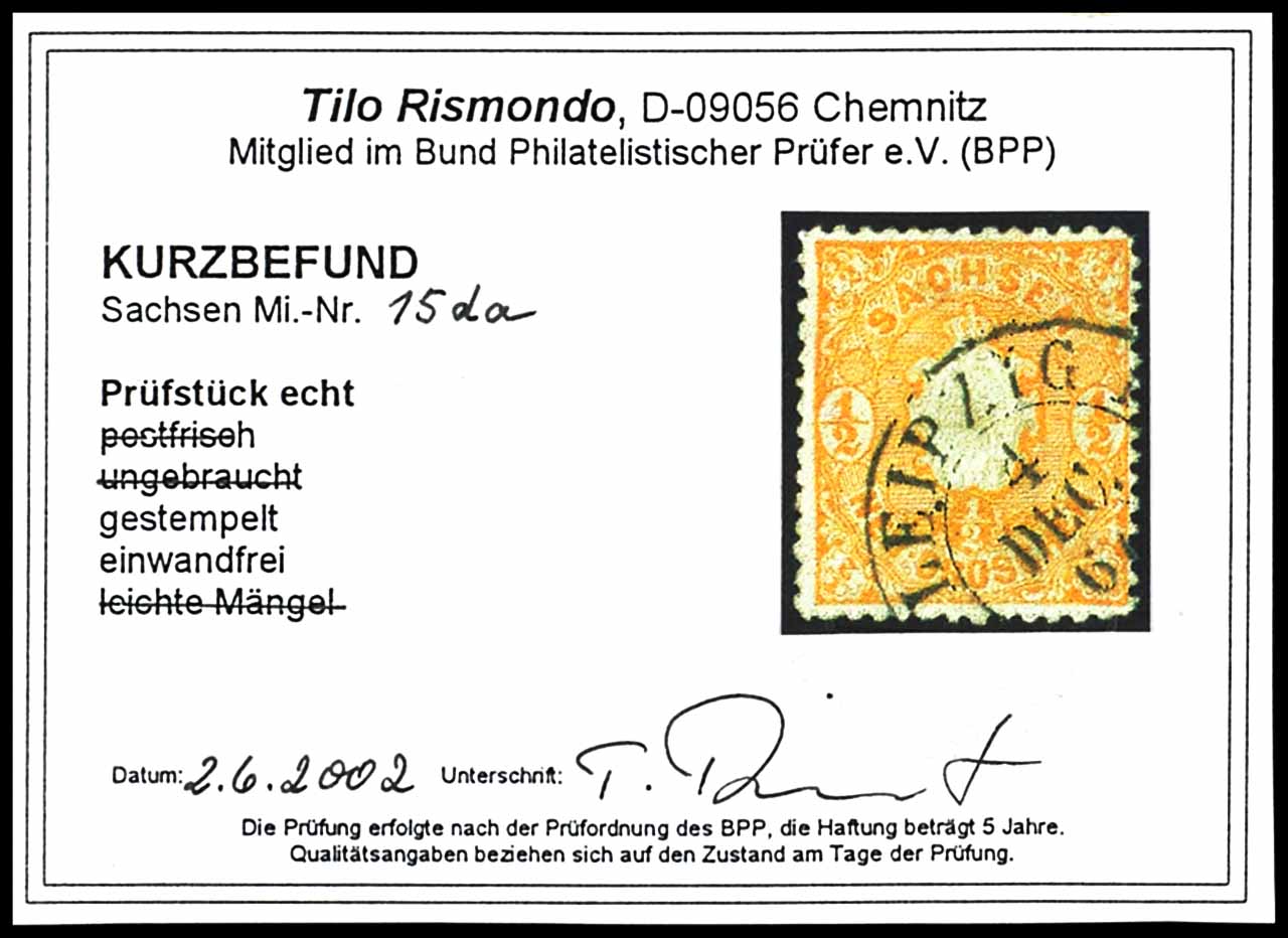 1 / 2 Neugroschen orange yellow, fresh colours and perfect perforations extremely fine copy, cancelled by two ring cancel "LEIPZIG 4 DEC", unsigned, photo expertize Tilo Rismondo BPP "genuine and immaculate", Michel 250.- - in fact rarely offered!