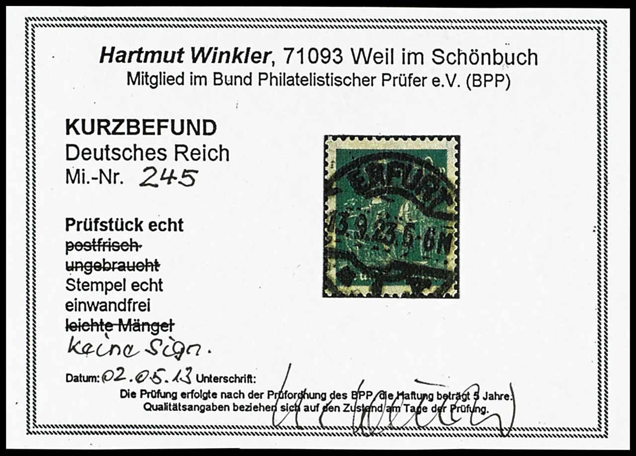 1922, 50 Mark bluish green worker. neat circle cancelled, photo expertize Winkler BPP "genuine and immaculate". Michel 150.-