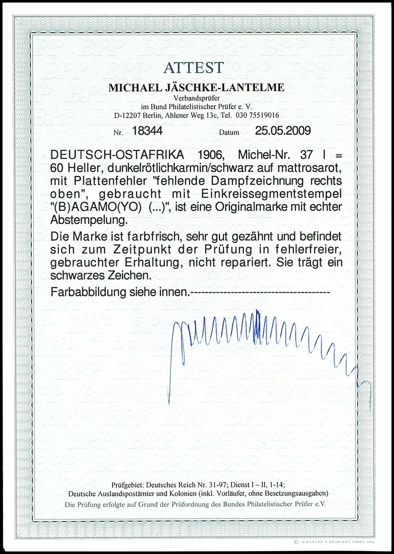 60 Heller dark reddish carmine / brown black on dull carmine red, plate flaw I, used, very fine, certificate Jaeschke L. BPP, Michel 450.-
