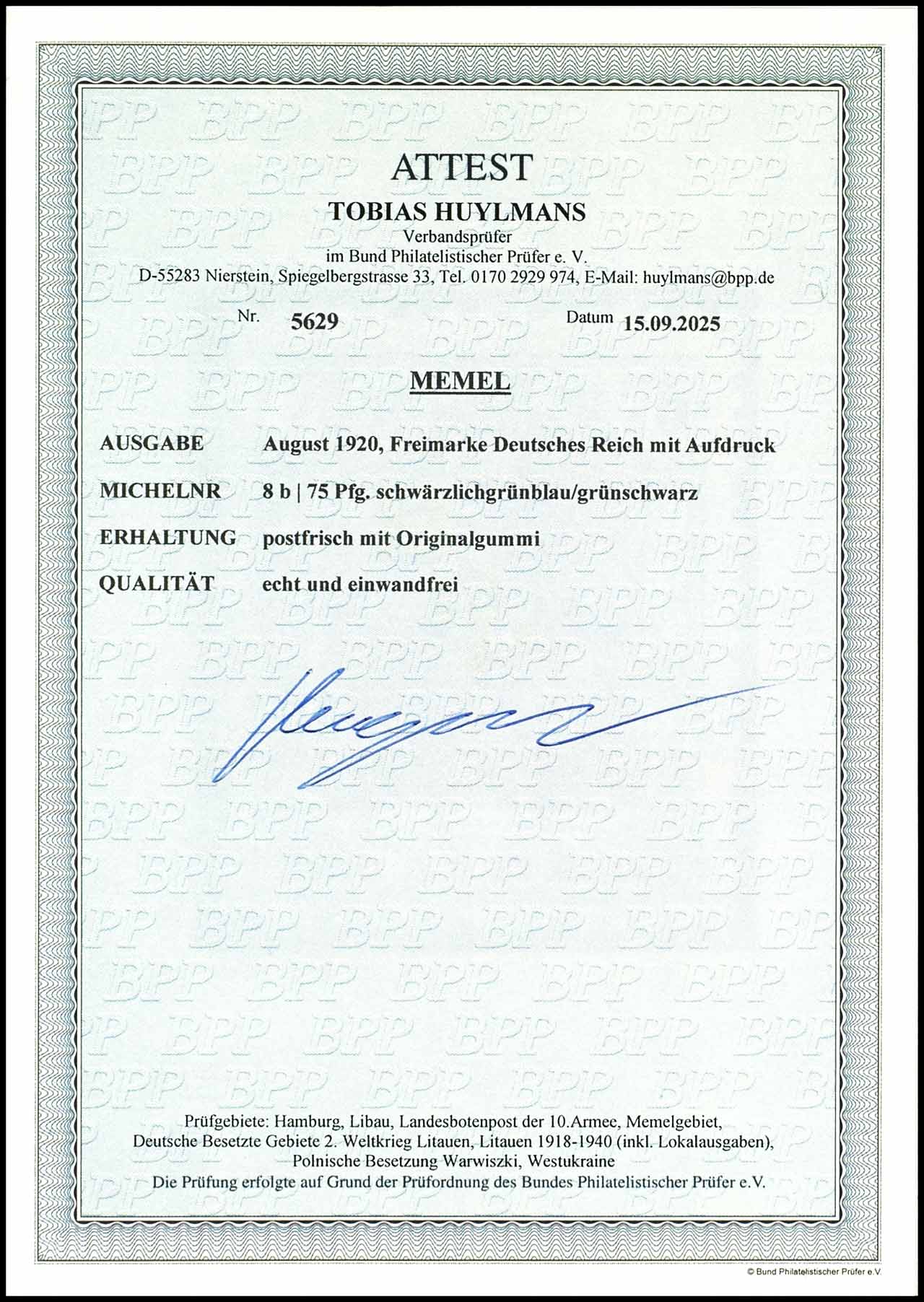 75 Pfg Germania blackish green blue / green black, mint never hinged, very fine, unsigned, photo expertize Tobias Huylmans BPP (2025) "perfect", Michel 300.-