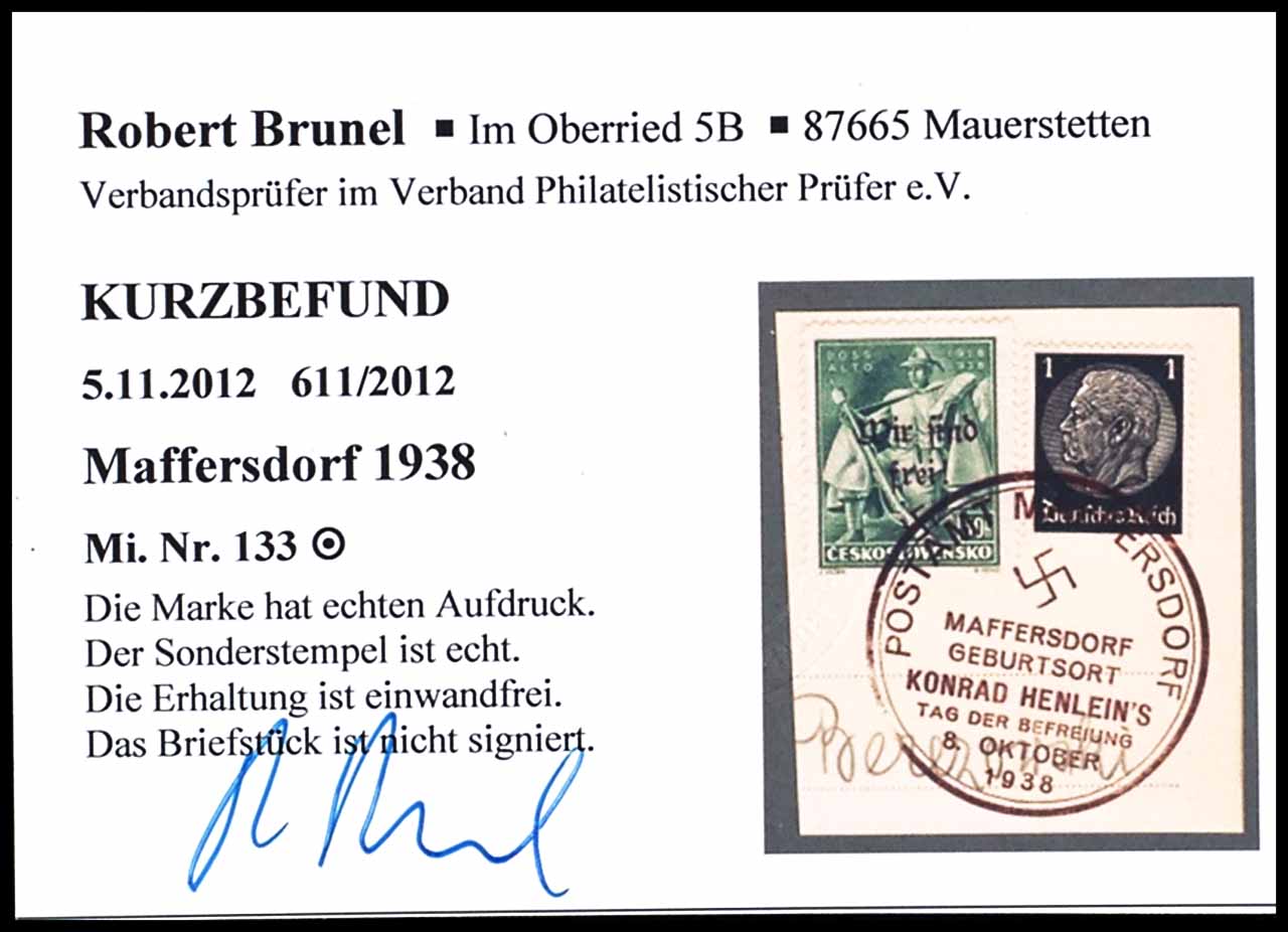 50 Heller Doss Alto with overprint "we are free! plus swastika", cancelled by special cancel on piece, photo expertize Robert Brunel VP "perfect", Michel 200.-