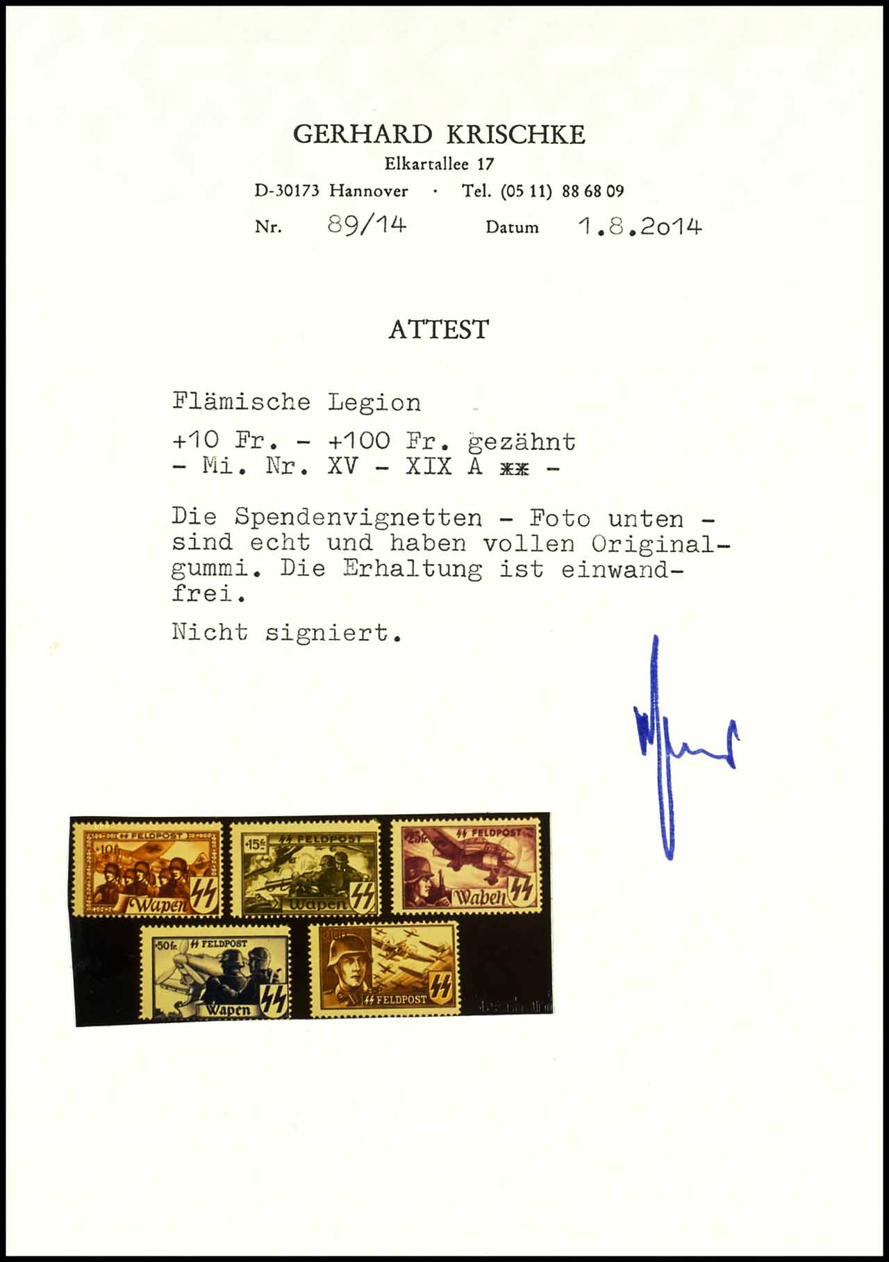 not issued: plus 10 - plus 100 Fr. soldiers and airplanes 1944, perforated, 5 values complete, perfectly mint never hinged, issued only 6.000 sets, unsigned, photo expertize Gerhard Krischke "the condition is perfect. ", Michel 600.-
