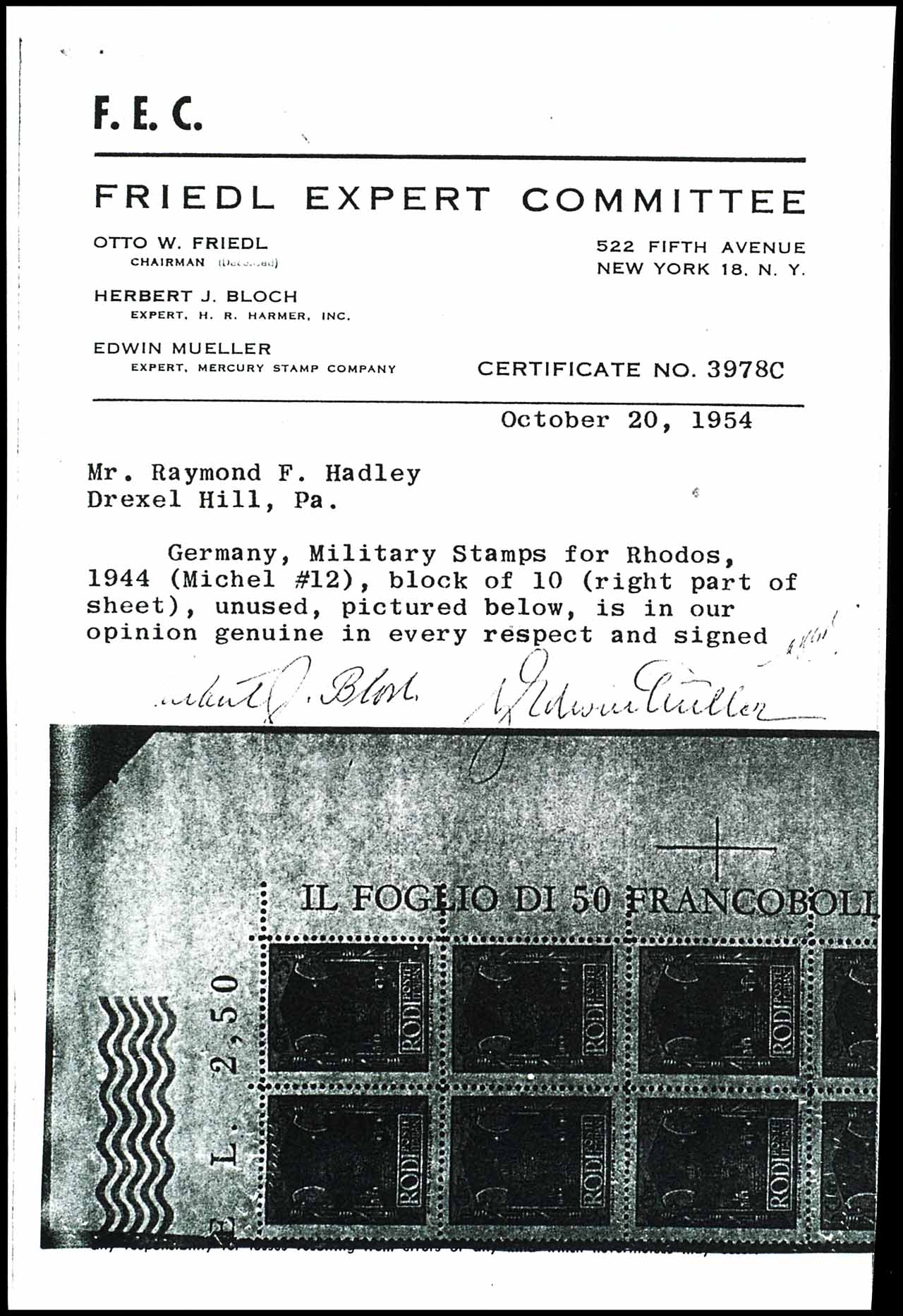island Rhodes, Christmas stamp with overprint in type I, mint never hinged, very fine, certificate Bloch for former unit, Michel 280.-