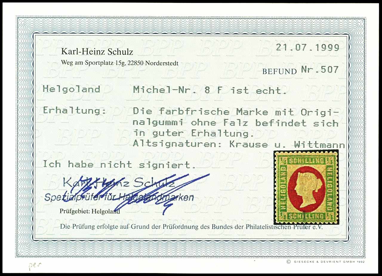 1 / 4 Shilling colour variety green / carmine, mint never hinged, very fine, expertized HK (Horst Krause, Gelsenkirchen), Wittmann and photo expertize Karl Henry Schulz BPP, Michel 220.-