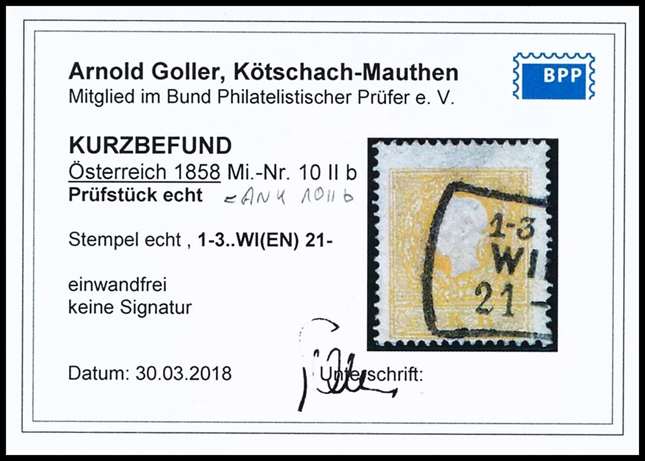 2 Kreuzer emperor head left, type II, dark yellow, as usual centered, perfect perforations, cancelled by partial cancel "1-3. WI (EN) 21. ", unsigned, photo expertize Arnold Goller BPP (2018) "perfect", Michel 110.-
