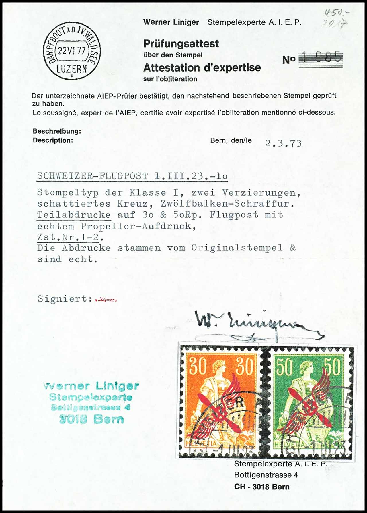 1920, 30 Rappen and 50 Rappen airmail, used, very fine, photo expertize Werner Lininger SBPV, Michel 1.540.- (Zumstein No 1 and 2)