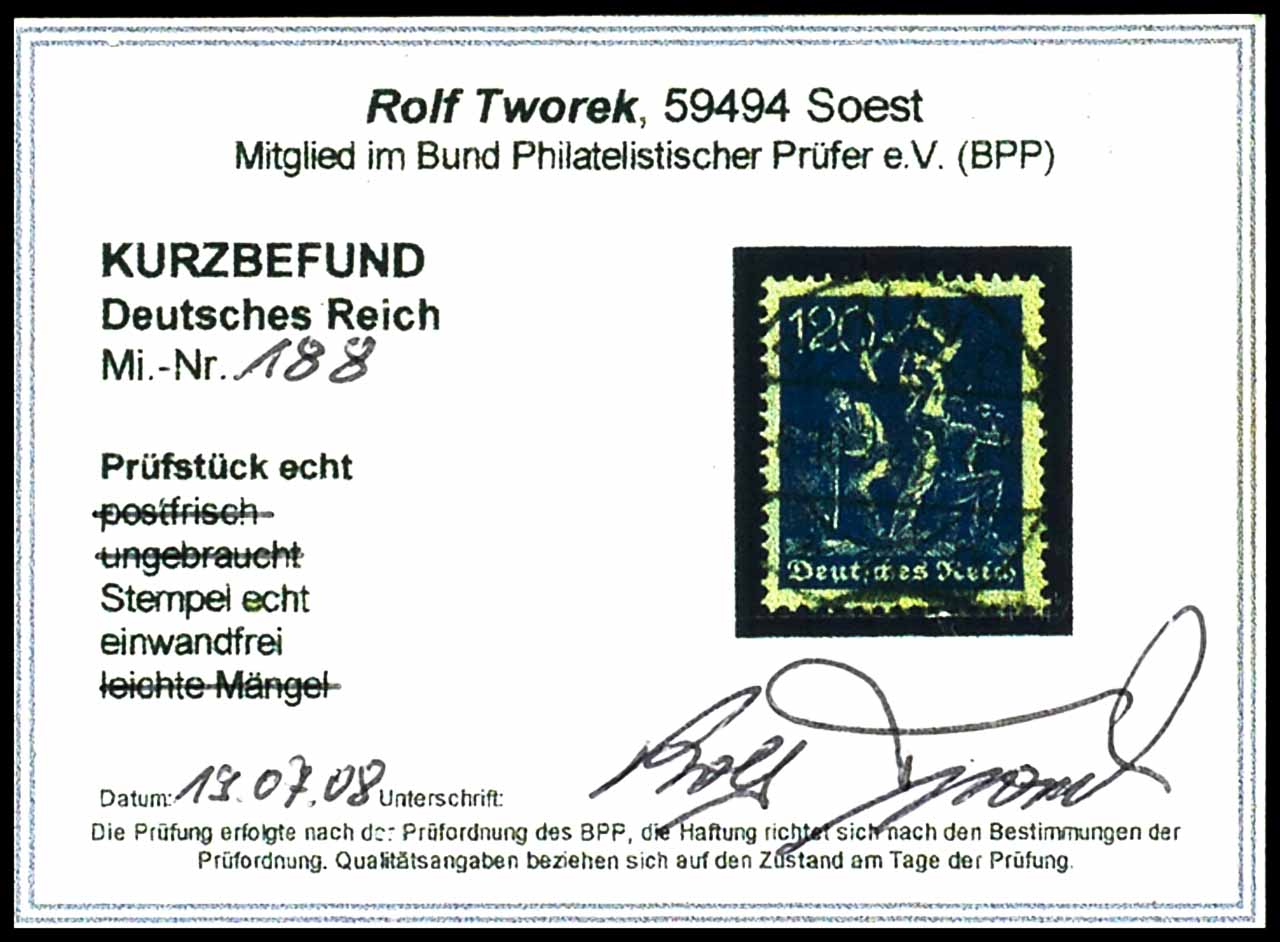 120 Pfennig Workers' stamp, 1921/22, watermark 2 wafers, used, mint condition, photographic expertise by Rolf Tworek BPP (2008), Michel 140,-