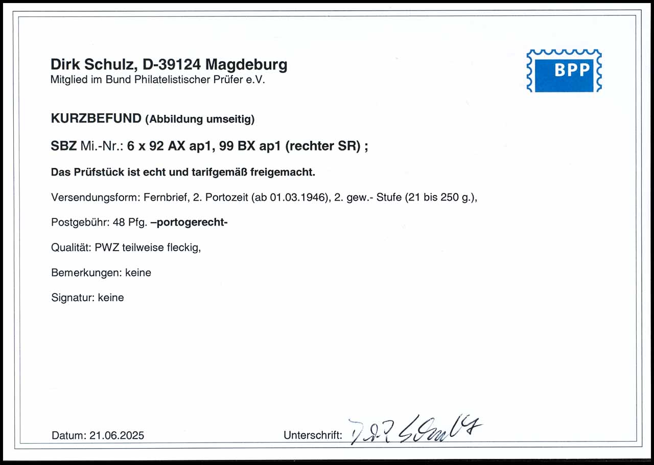 3 Pf Thuringia on p1 paper, 6 pieces in a Miguet album on a letter, partially stained, photographic finding by Schulz BPP, catalog value 540.-