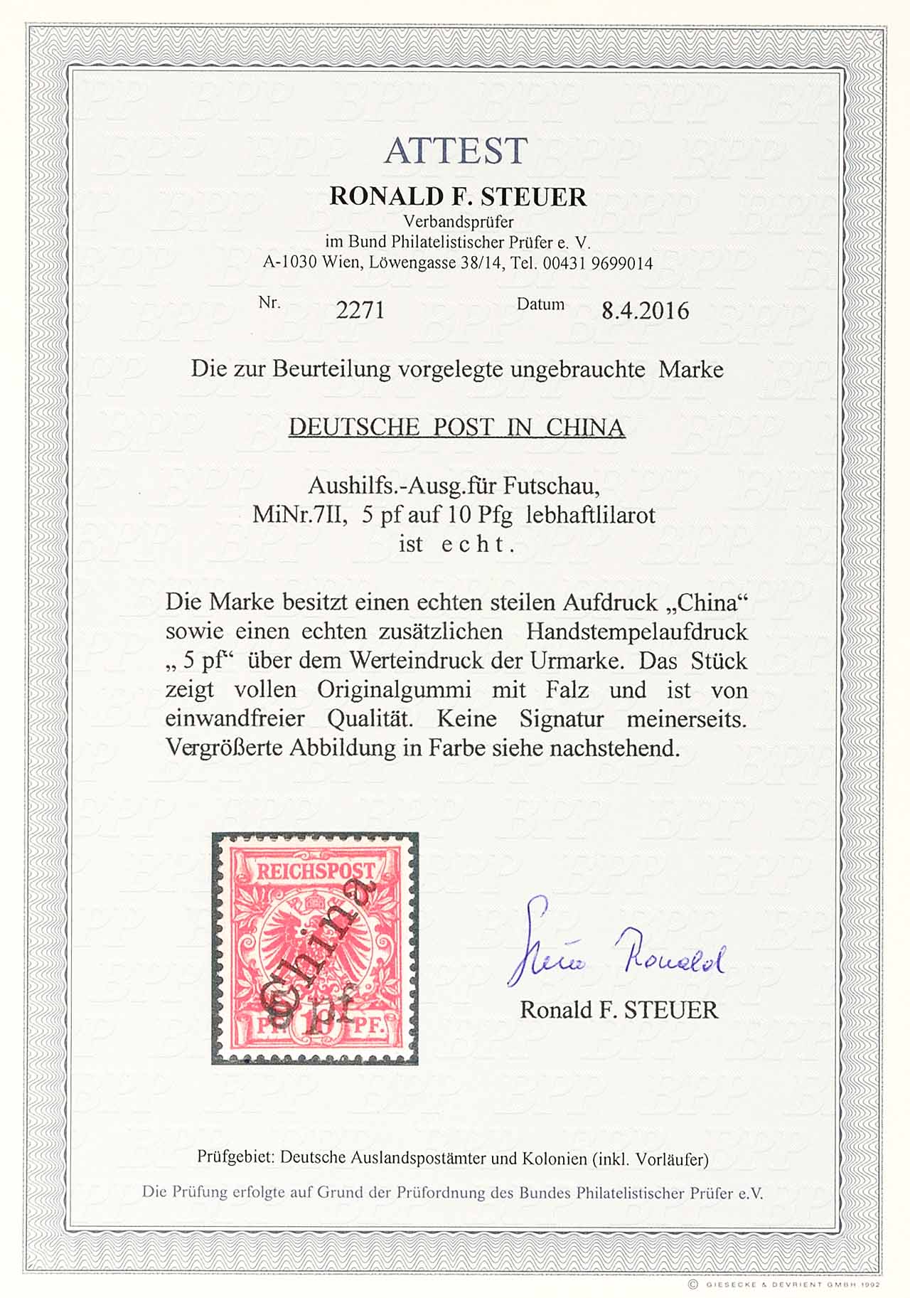 5 Pf. on 10 Pf. with clean hinge, current photo expertize Steuer BPP".: . . From perfect quality", Michel 700.